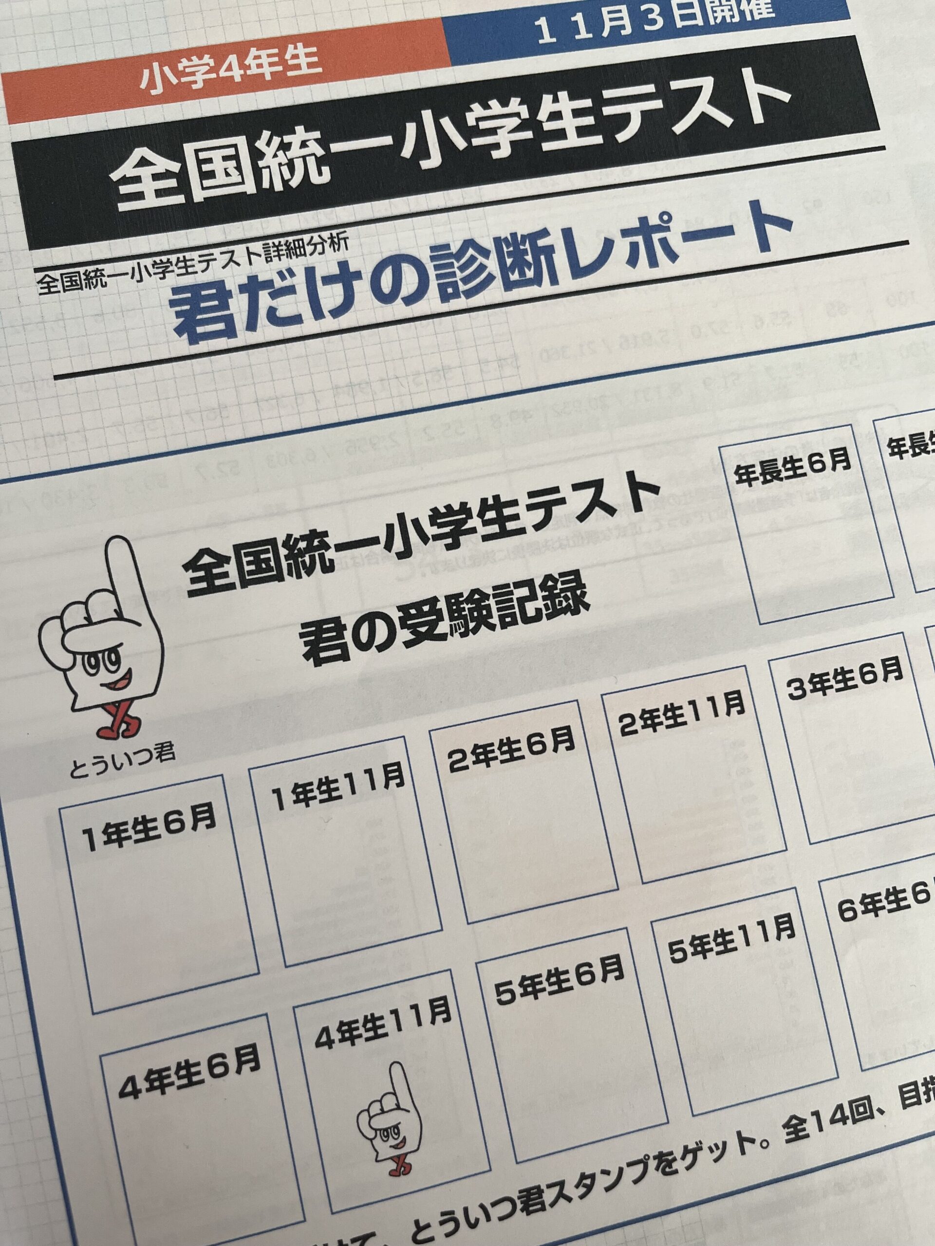 四谷大塚の全国統一小学生テストは規模感が大きく、受験者が多かったこと、また試験会場でお友達に会ったりしたことで少しは勉強への刺激になったのではないかな?と期待しています。